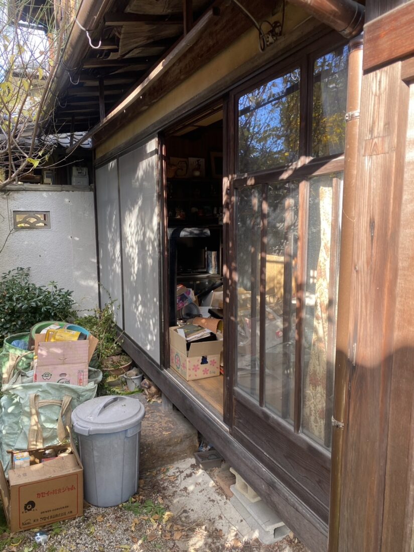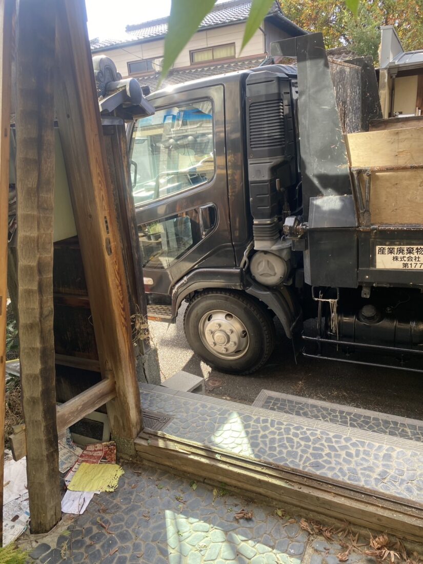 解体前のため玄関も取り外され、これから中の残置物はトラックに積まれ「ゴミ」として処分される予定でした。