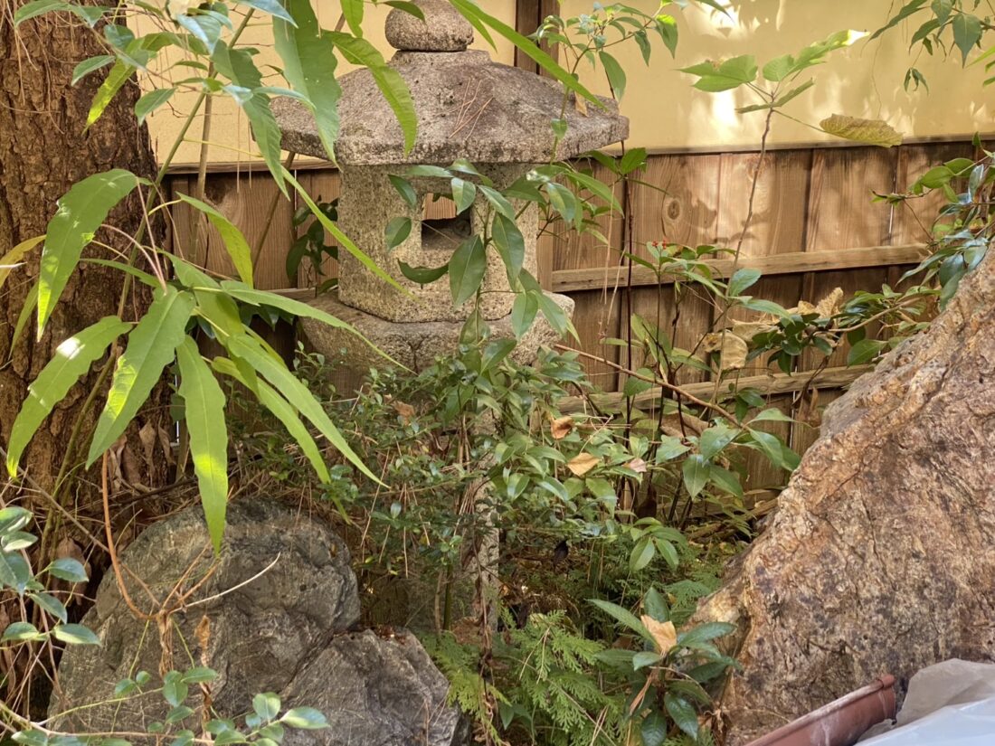 お庭には、風格ある石灯籠や鞍馬石の靴脱ぎ石、坪庭サイズの美しい日本庭園が残されており、