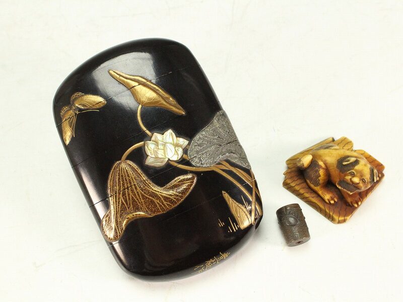 SOLD OUT 蓮蜻蛉蒔絵 印籠 豊遊作 在銘 狗根付(ZE685)