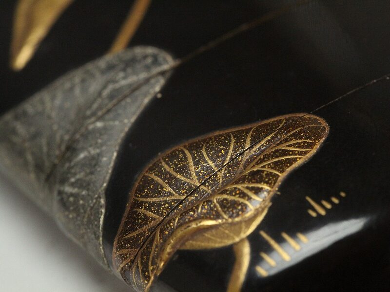 蒔絵:漆器の代表的な加飾技法の一つで、漆で描いた下絵に金粉や銀粉などを蒔きつけて文様を表現します。
