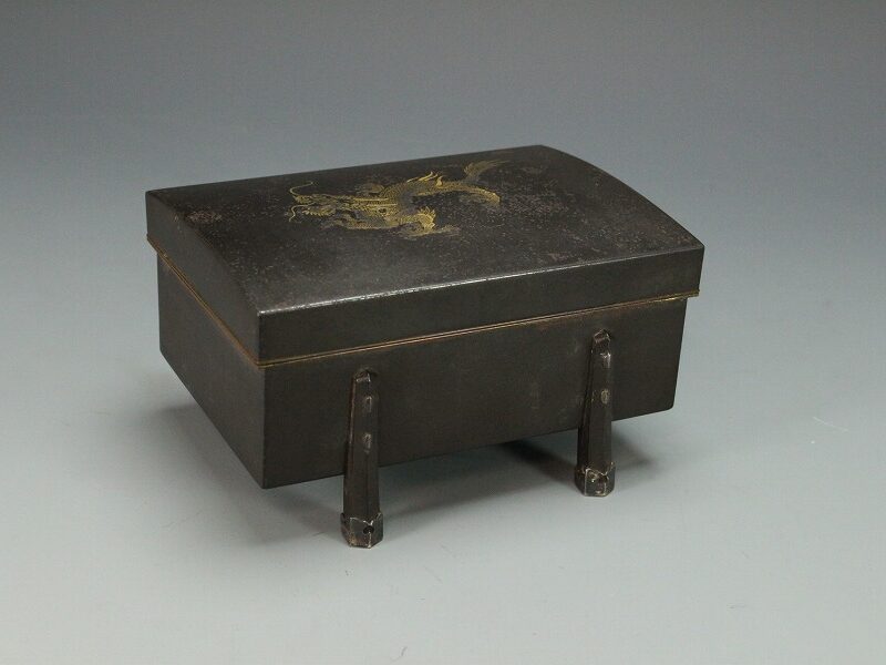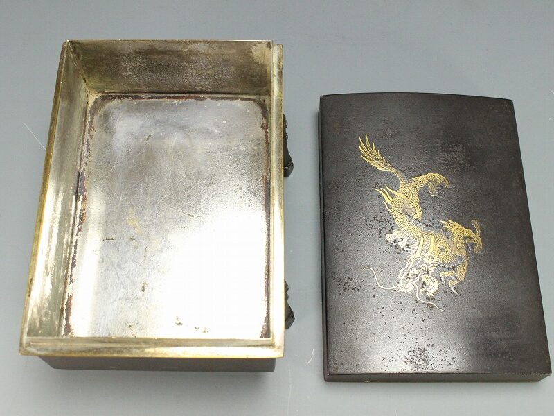 SOLD OUT 美錺造 古鉄 金銀象嵌 龍紋 櫃 蓋物(MA8)