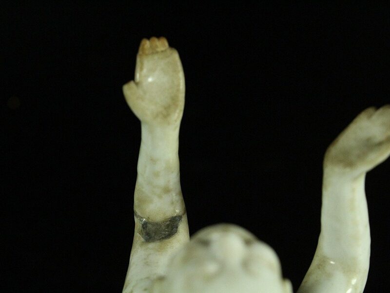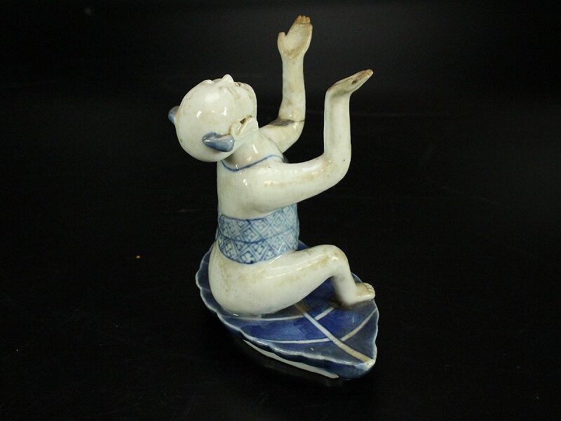 SOLD OUT 中国美術 青花 葉上唐子 置物 清 高11cm(MG980)