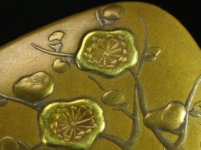 SOLD OUT 極上 梅 蒔絵 根付 清川作 在銘 3.8cmx3cm(LC575)