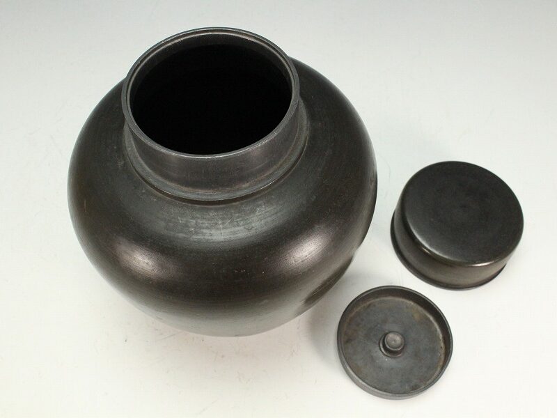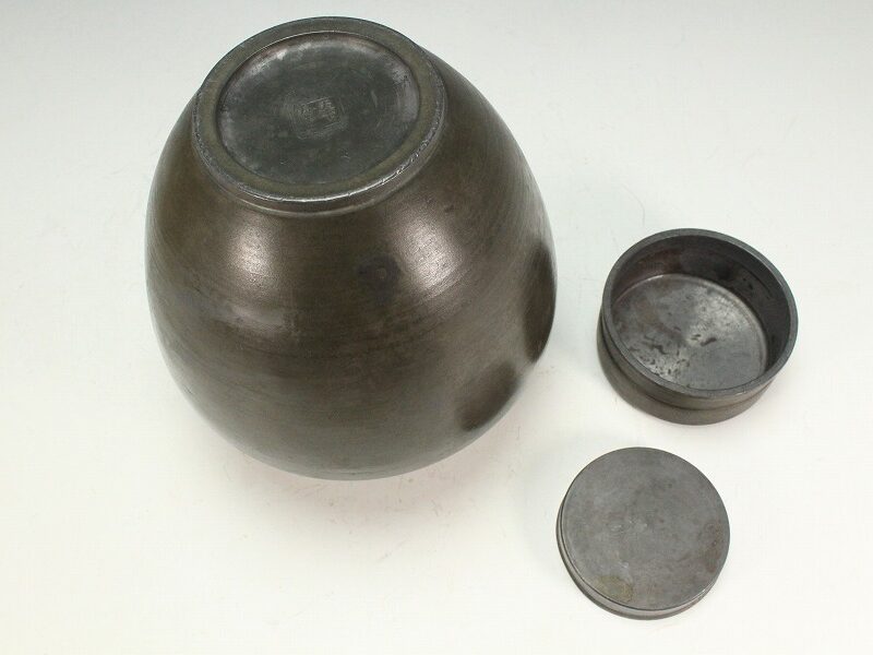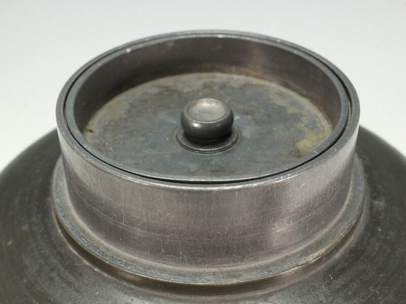 錫とは、金属特有の冷たさや硬さがなく、柔らかな光沢を放つ金属です。古くから茶器の素材として使われており、茶壺は機密性に優れ、湿気を防ぎます。
