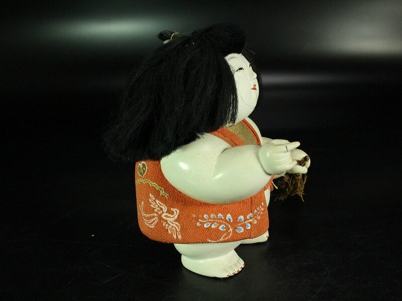 御所人形とは、子どもの愛らしい姿を三頭身で表現した、日本独特の人形です。裸の人形に縮緬などの衣装を身に付け、特に宮中や公家の間で好まれた贈答品として知られています。