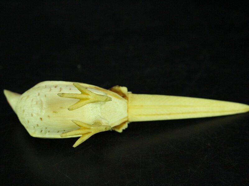 象牙とは ゾウの牙や歯から採取される硬くて白い物質で、歯や牙の物理構造の一つである象牙質を主成分としています。多くの哺乳類の「牙」と称される長く尖った歯は犬歯が発達したものですが、ゾウの牙は門歯が発達したものである点が異なります。材質が美しく加工も容易であるため、古代から芸術や工芸品や製造業において、象牙彫刻、義歯、ピアノの鍵盤、扇子、ドミノなど、様々な物を作るために重宝されてきました。