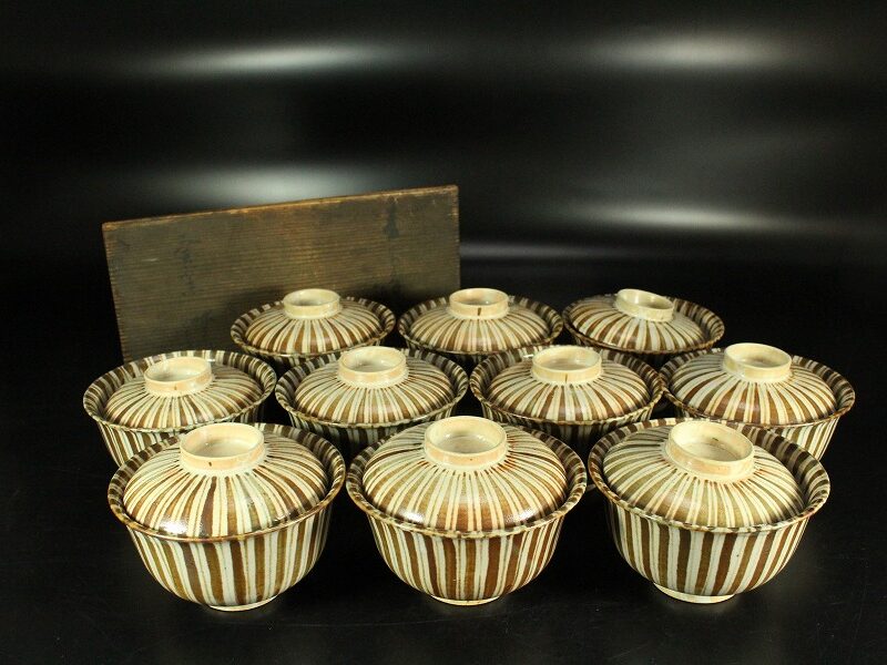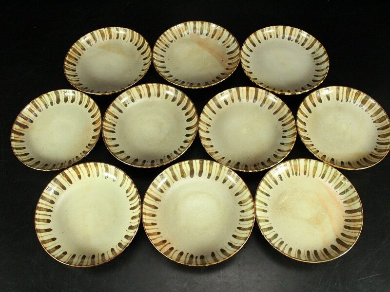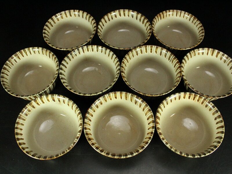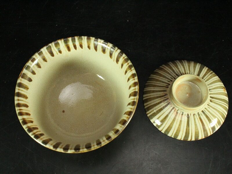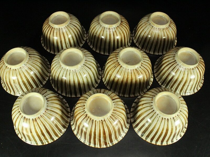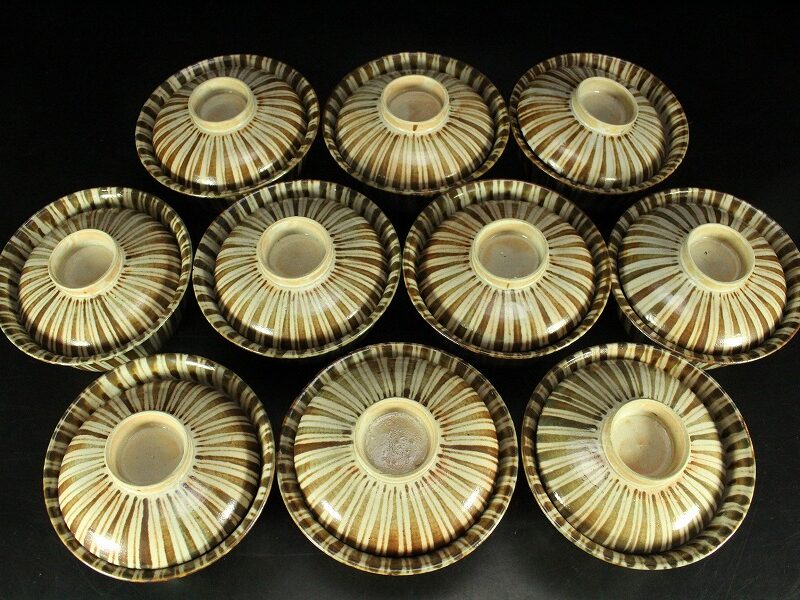 麦藁手(むぎわらで)とは、陶磁器の装飾技法の一つで、器の表面に麦の穂を連想させるような縦縞模様を施したもののことを指します。特に瀬戸焼でよく見られる技法で、江戸時代後期から品野や赤津を中心に作られました。