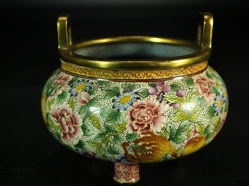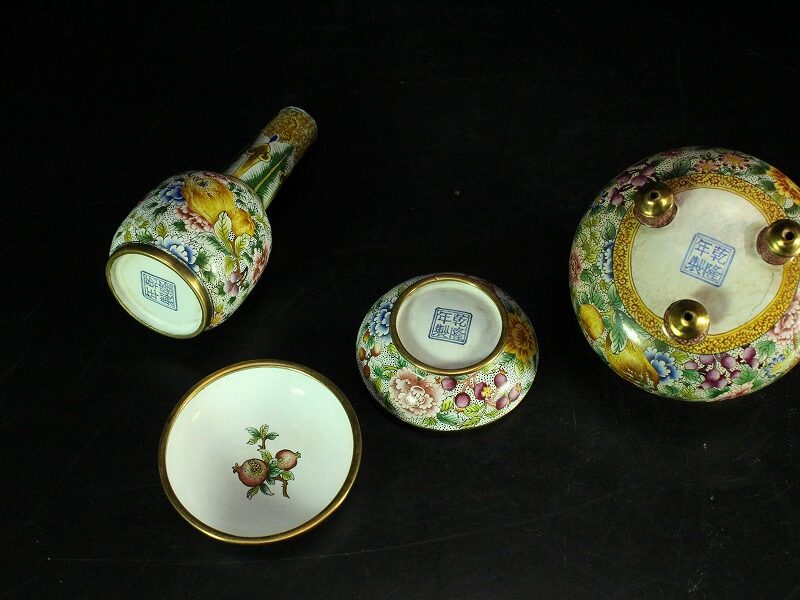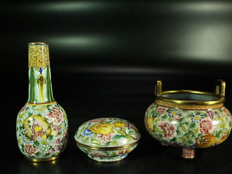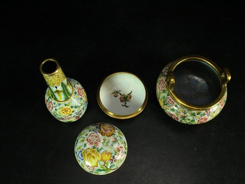 SOLD OUT 中国美術 琺瑯彩 香炉 箸筒 香合 三揃(A831)