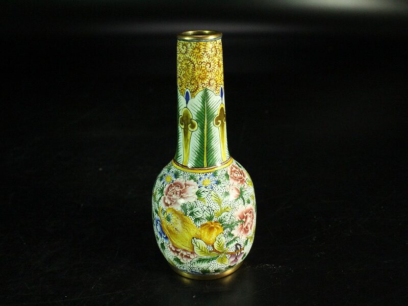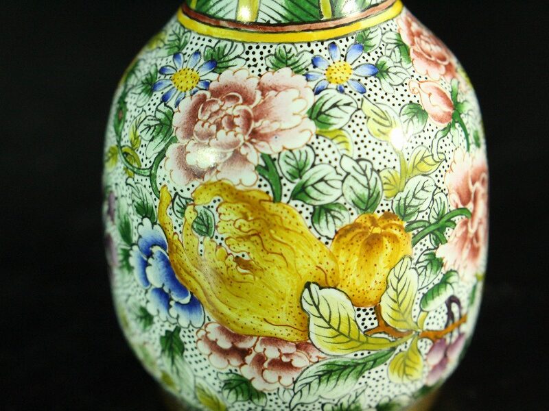 琺瑯彩(ほうろうさい)とは、中国の清朝時代に始まった陶磁器の技法で、白磁の上にガラス質の釉薬を焼き付け、その上から絵を描くものです。ヨーロッパから伝わった七宝の技術を応用したもので、それまでの陶磁器にはない繊細なグラデーションや絵画的な表現を可能にしました。また、粉彩(ふんさい)や洋彩(ようさい)とも呼ばれます。
