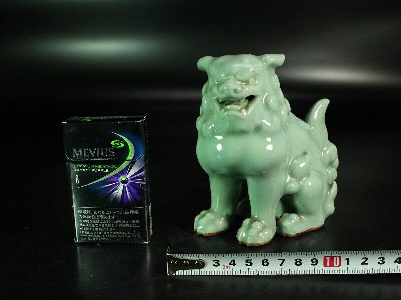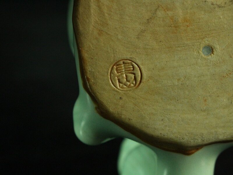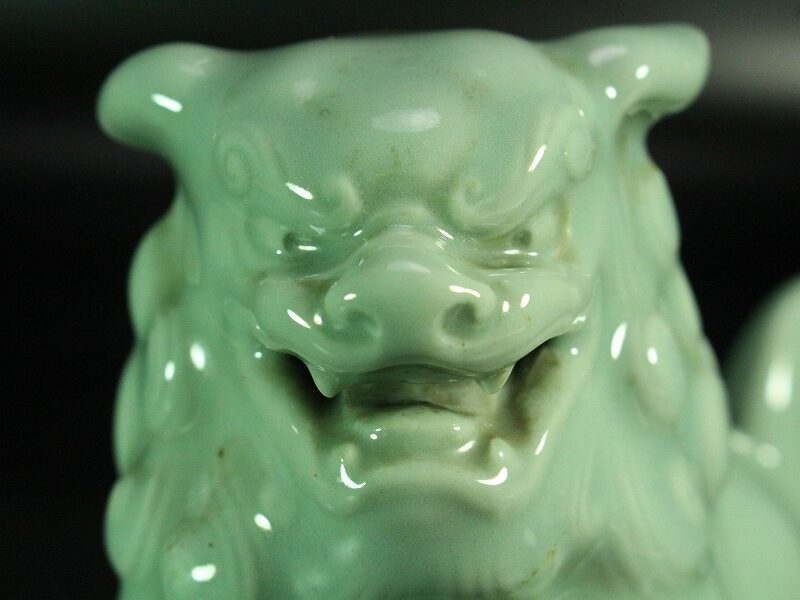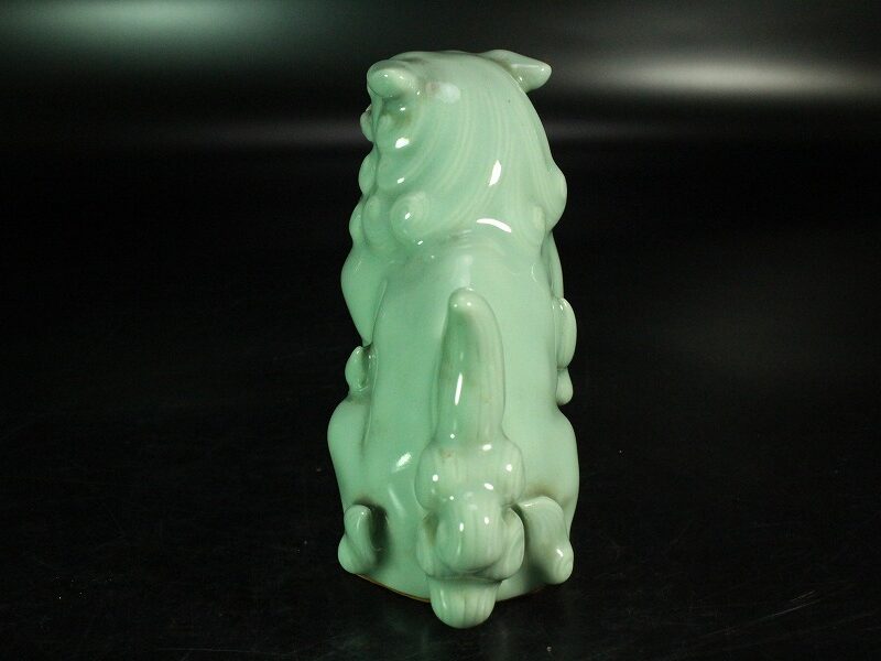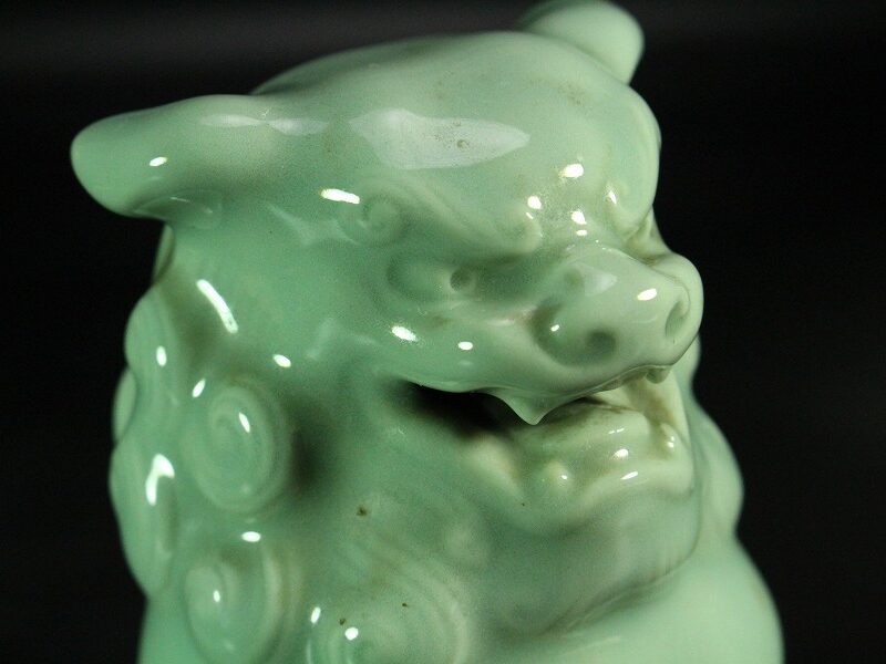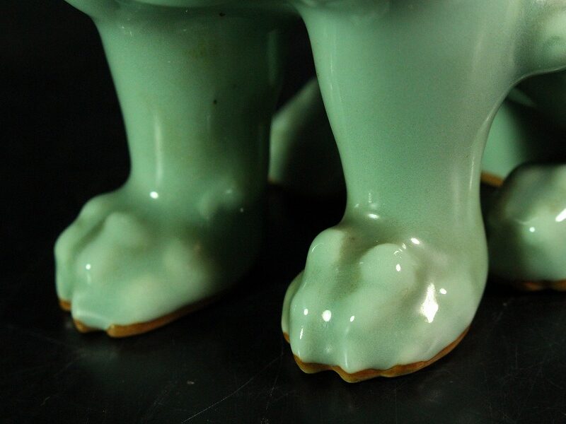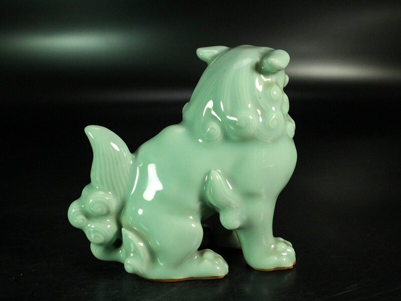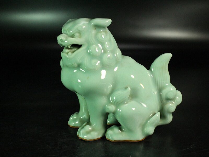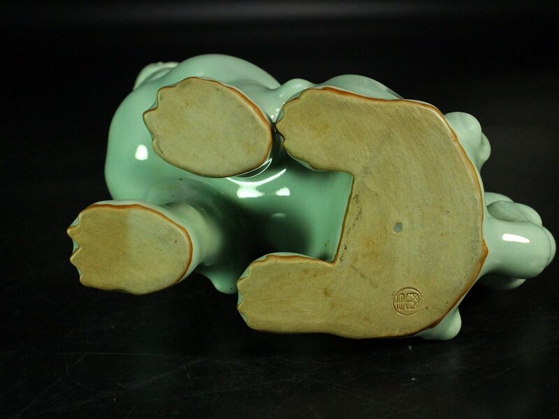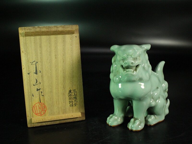 SOLD OUT 初代 宮永東山 造 青磁 唐獅子置物 共箱 美品(XA939)