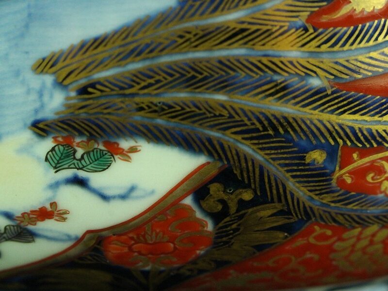 色絵:染付の上に赤や金、緑などで上絵を描いたもの