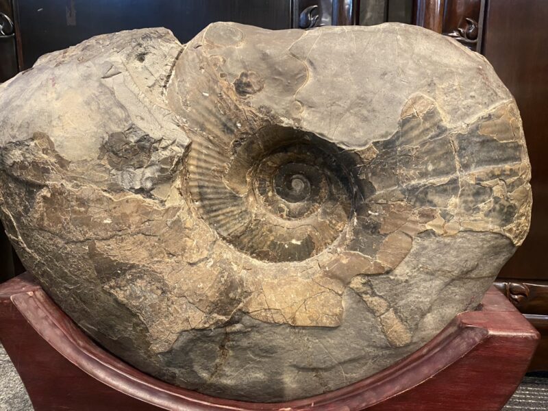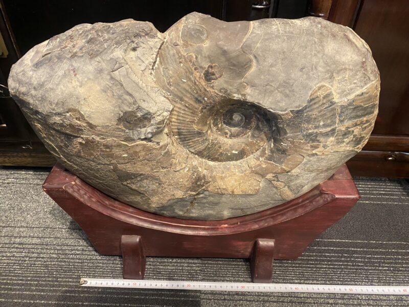 アンモナイト 特大 化石 ジュラ紀 古代 台付(YC609)
